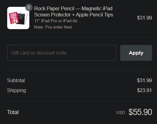 Shipping: $20.43 (more than twice than the $10 “flat rate”)