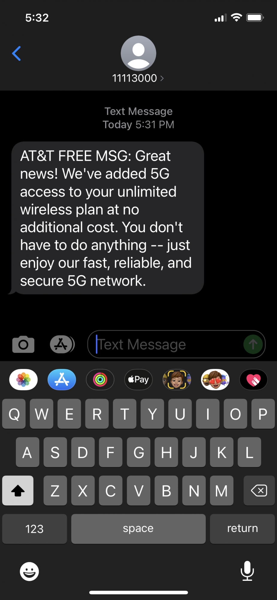 You might have to switch to T-Mobile and get the 5G service u requireI forgot to post an update. After talking to 3 service reps & going into an AT&T store to get a new SIM (because it was free) I still didn't get 5G. Finally a few weeks ago I happened to see the 5G icon. A day later, I got the same text message as you did. Not too many places where I actually get 5G speeds so hoping the service will improve. 4G LTE is fine. I wish I had better cell service at my house. Almost worthless if I don't use wifi calling.