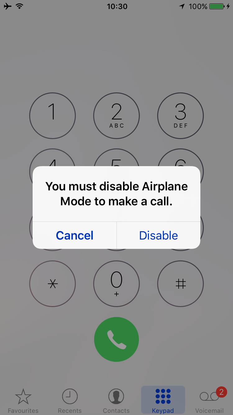 It works for me too ... Stupid question, you are on 9.3 correct? Maybe try rebootingWell please enlighten me then... When I'm in airplane mode but have wifi on, when I place call, I get a message that says i must disable airplane mode to place a call, with the options of cancel or disable.