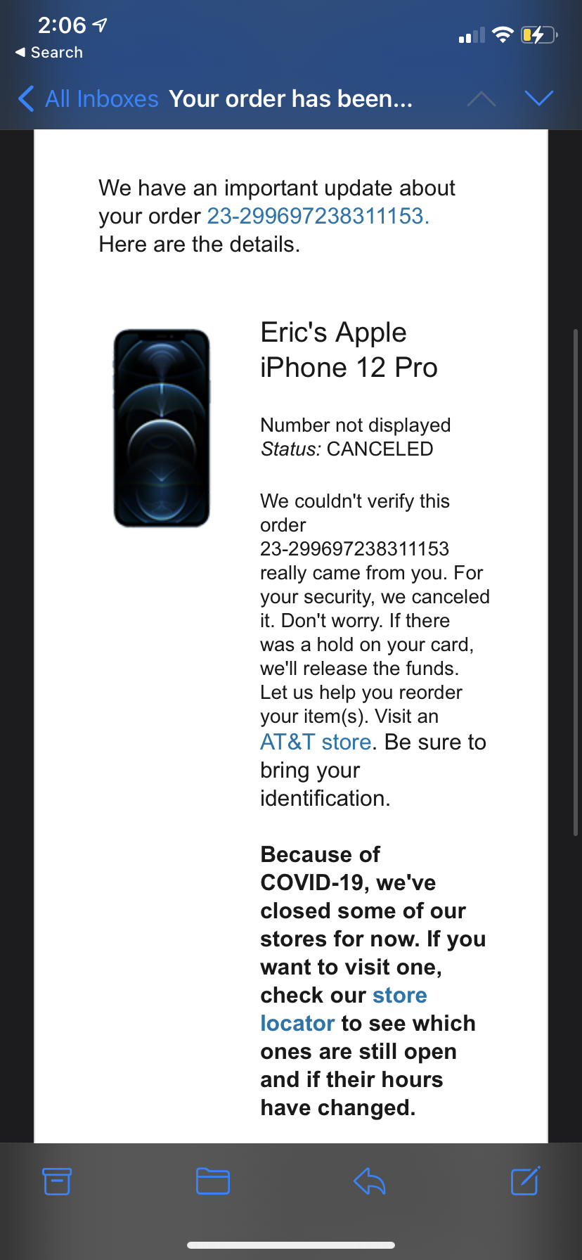 Got my update email at 3pm CST with same delivery dates 10/26 - 11/2. I think the delivery dates are a CYA for them. I'm not too worried about itorder tracking on AT&T website working. Order shows up. My iPhone 12 pro still says Oct 26 - Nov 2