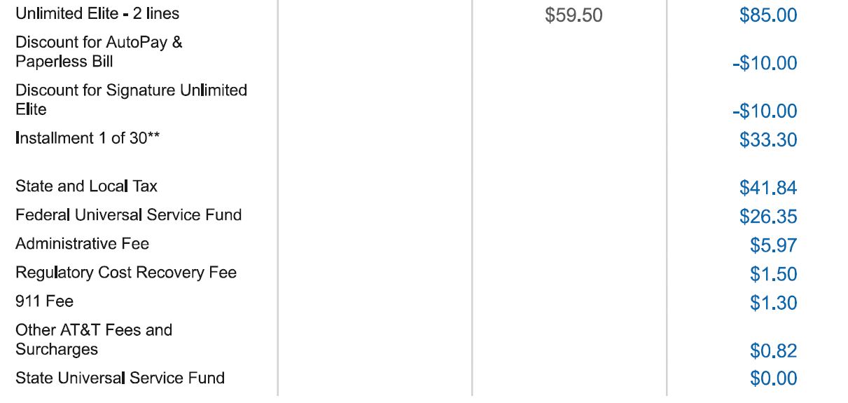 When I ordered on AT&T it said the tax for my phone ($95) would appear on my next statement. I did not need to pay it upon checkout.Anyone got a service summary for upcoming bill from Att and showing $41.84 and $26.35 in tax but I already paid tax when I ordered iPhone 12 Pro what is this tax for? Tax for the wireless plan should not be this high. I have unlimited elite with 3 lines.