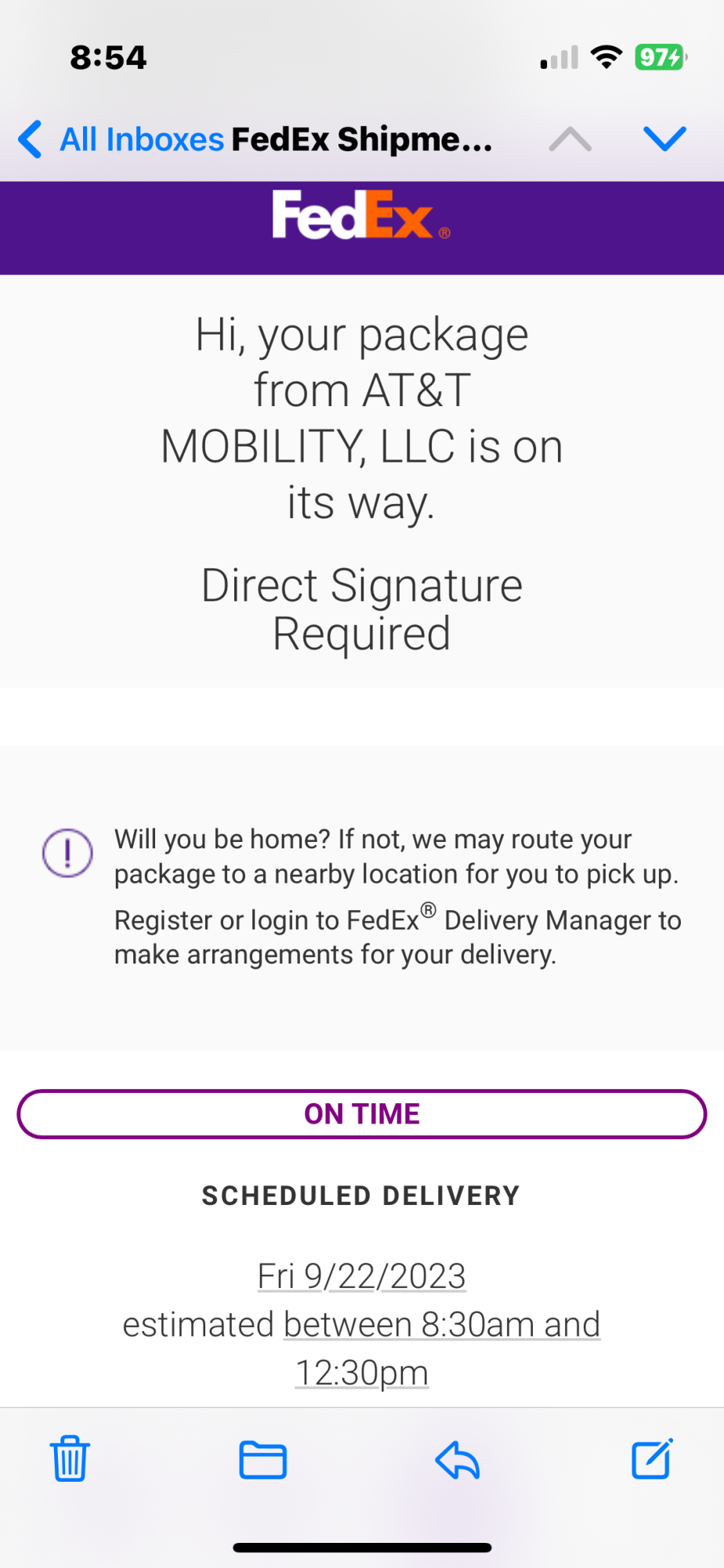 It is the app is having problems today. Does anyone know if ATT uses FedEx, UPS or both?