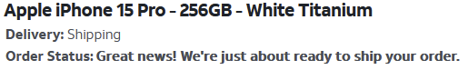 iPhone 15 Pro - Titanium White - 256gb - pre-order completed at 7:58am EST! Let's go!