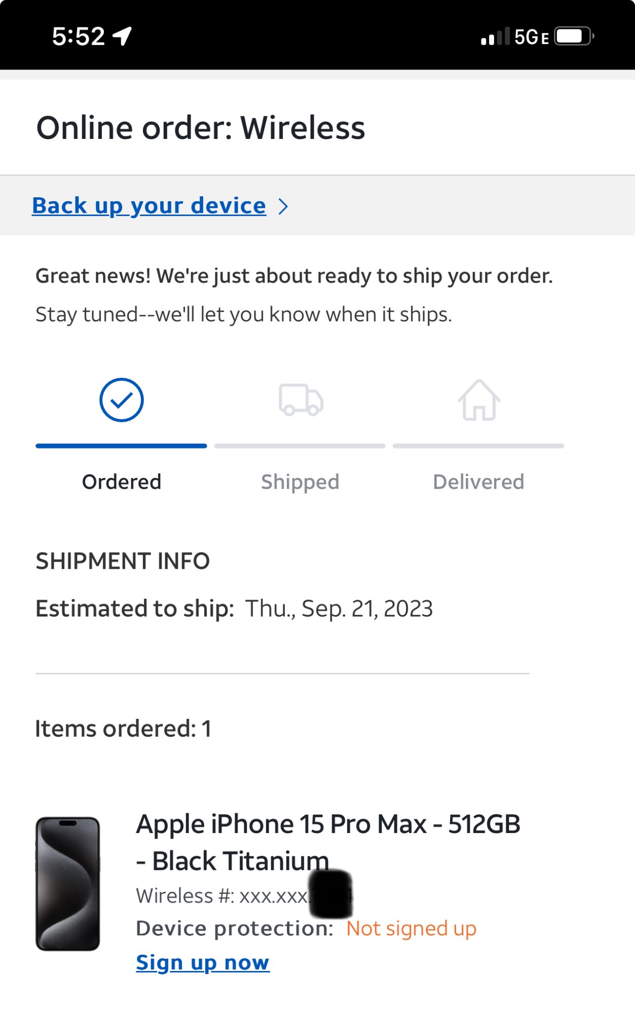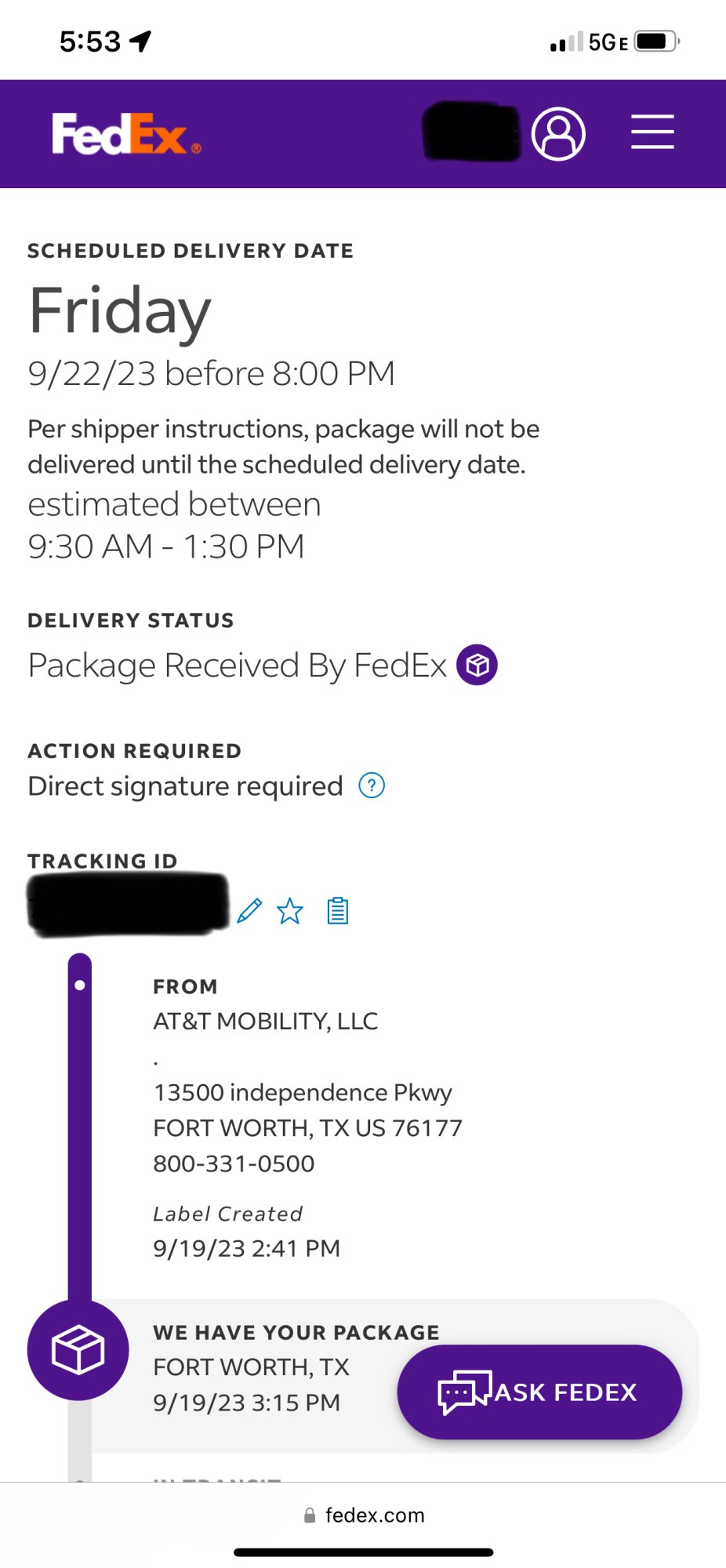 Same boat for me. FirstNet and my original order was cancelled and had to place a new one over the phone. But for me the second order has always been 9/22-10/6 estimated ship.I guess I should clarify that I am a FirstNet customer, not sure if their inventory is any different than what regular AT&T customers have available. I experienced a lot of problems online, and after attempting on my own for a few hours I finally just called. I didn’t get my order in until just after 1PM EST. I got an email about an hour later with an order confirmation. When I check my order status with AT&T, it hasn’t updated. It just says ordered with a 9/21 ship date. I noticed yesterday I had a “pending delivery” in my FedEx app but no information. Today it has updated a couple of times with an on time delivery of 9/22.
