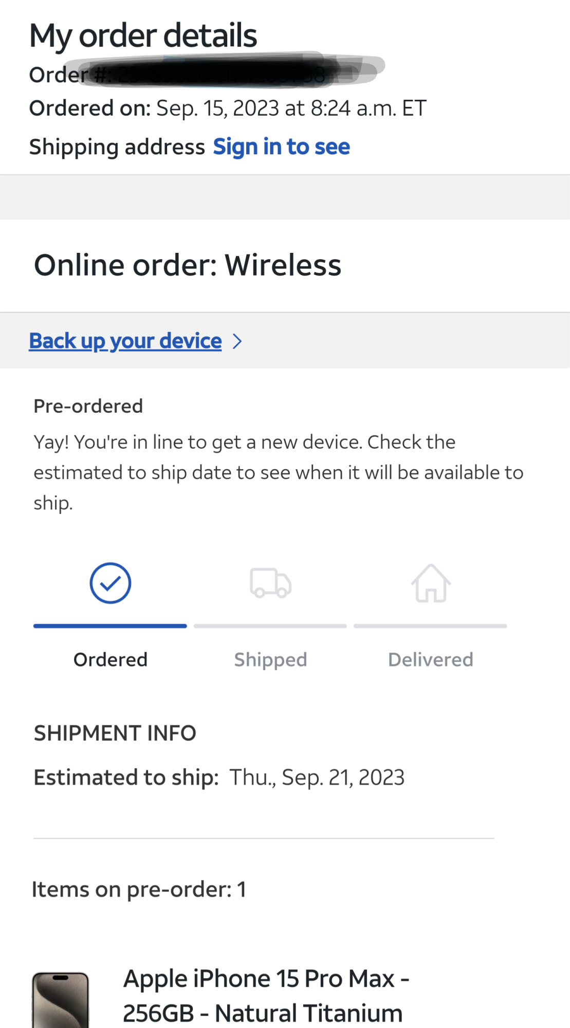 I guess I should clarify that I am a FirstNet customer, not sure if their inventory is any different than what regular AT&T customers have available. I experienced a lot of problems online, and after attempting on my own for a few hours I finally just called. I didn’t get my order in until just after 1PM EST. I got an email about an hour later with an order confirmation. When I check my order status with AT&T, it hasn’t updated. It just says ordered with a 9/21 ship date. I noticed yesterday I had a “pending delivery” in my FedEx app but no information. Today it has updated a couple of times with an on time delivery of 9/22.when did you pre order yours 😯