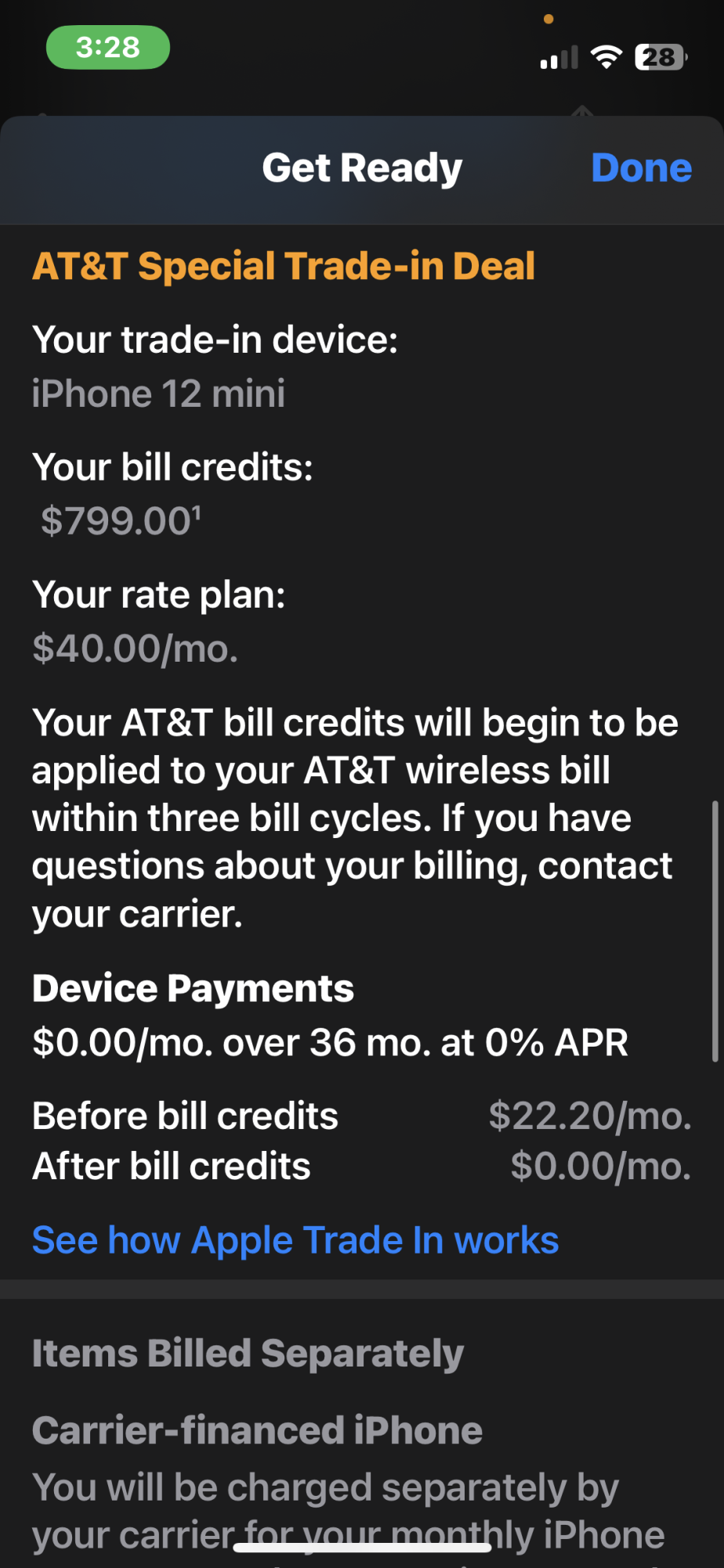 I did the prepare for preorder on ATT site. The 12 ProMax I am upgrading has a cracked back screen which I noted when going through the Q&A. The normal trade in value would have been $260 - but that was crossed out and it said $1000. So ATT offering a hefty bonus for first day orders it seems - never seen this before. Can't imagine it working like this on the Apple site.