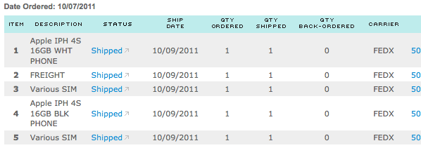Ordered two 4S's at 4.12AM EDT on 10/7. They have now shipped. The tracking numbers are still not activated. At least it's coming, just like I thought it would. Come on Siri, just two days away!![]()