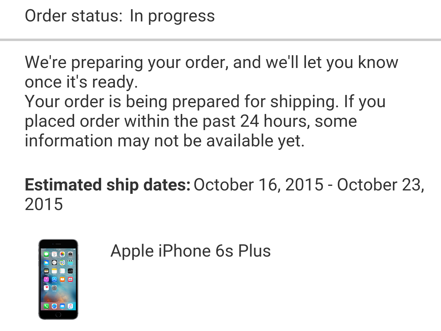 I'm not sure what you mean. Check your credit card statement, if you've been charged then at some point in the future you'll get the phone you ordered. So in that respect it is "confirmed", but as to which day it will arrive is another matter.Just got a msg from att. Does this mean my 6s+ order is secured/guaranteed?