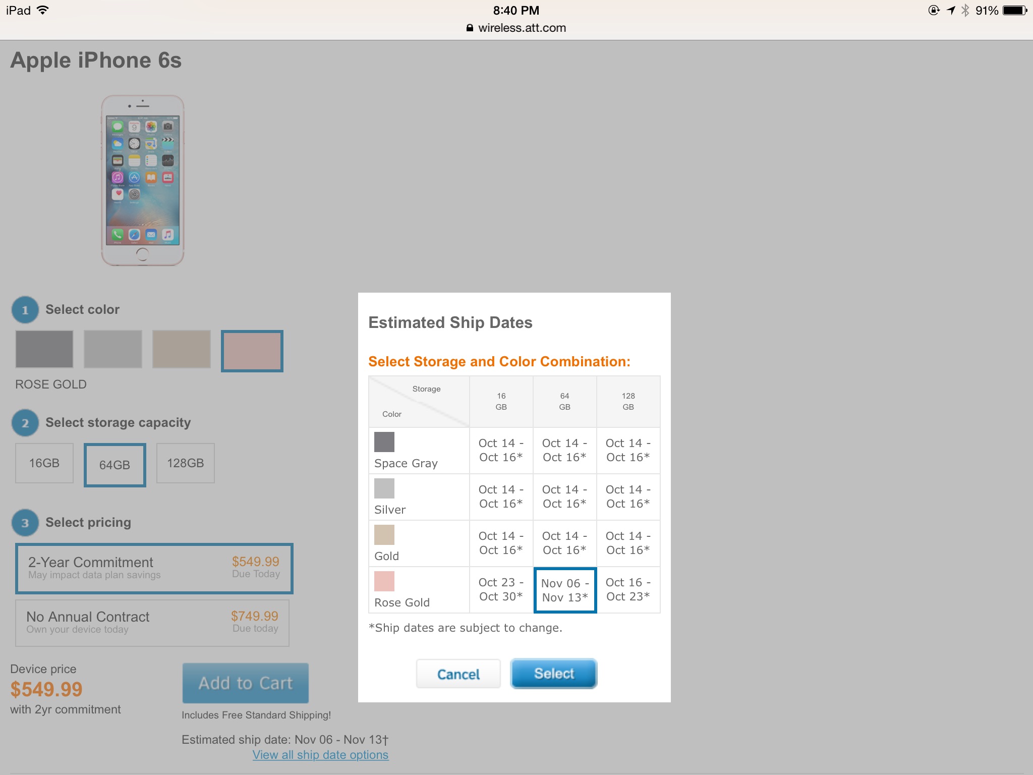 After receiving the wrong model, the 6 Plus (no "S") and calling back, I am told I have to ship this one back before they can even process the order for a new one. So far I've placed 6 calls to AT&T in an attempt to get a phone ordered properly, each call is an average of 1 hour between being put while they speak to supervisors, etc.