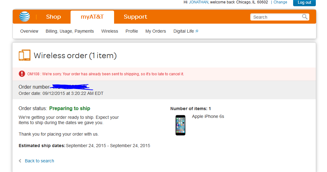 AT&T : It is because we are having some issues with our system, I do apologize. And yes, you will receive your phone on 09/25/15