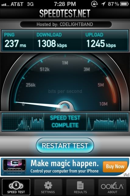 Moreover, the speeds we're seeing on our iPhone 4's are sometimes faster than the crappy internet we have hooked up to our computer at home.