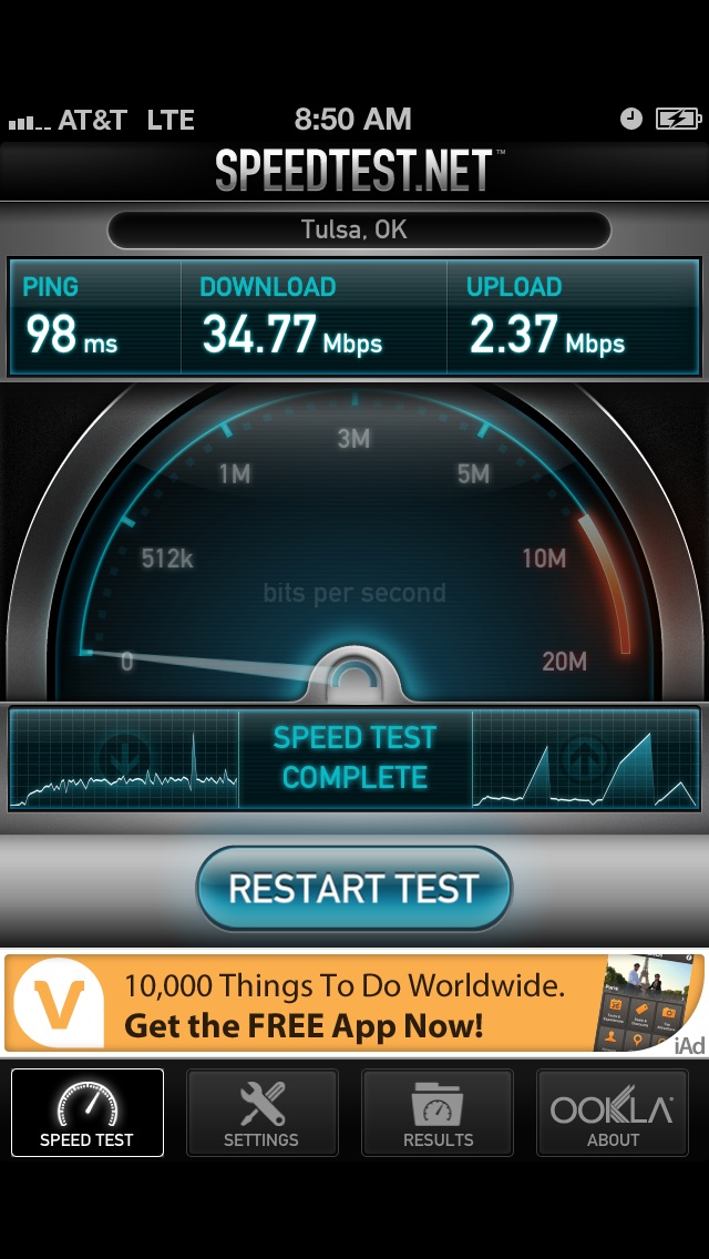 ill give that a try. to bad the LTE gives me like only 2 bars, i had more with 4g lol but its still like 50 times faster, lol i just did it again, gave me PA, guess thats better then KansasWhen I pulled into the parking lot in the office, for a little while, it was pulling a server in Kansas. I restarted the app and I'm back to the NY server.