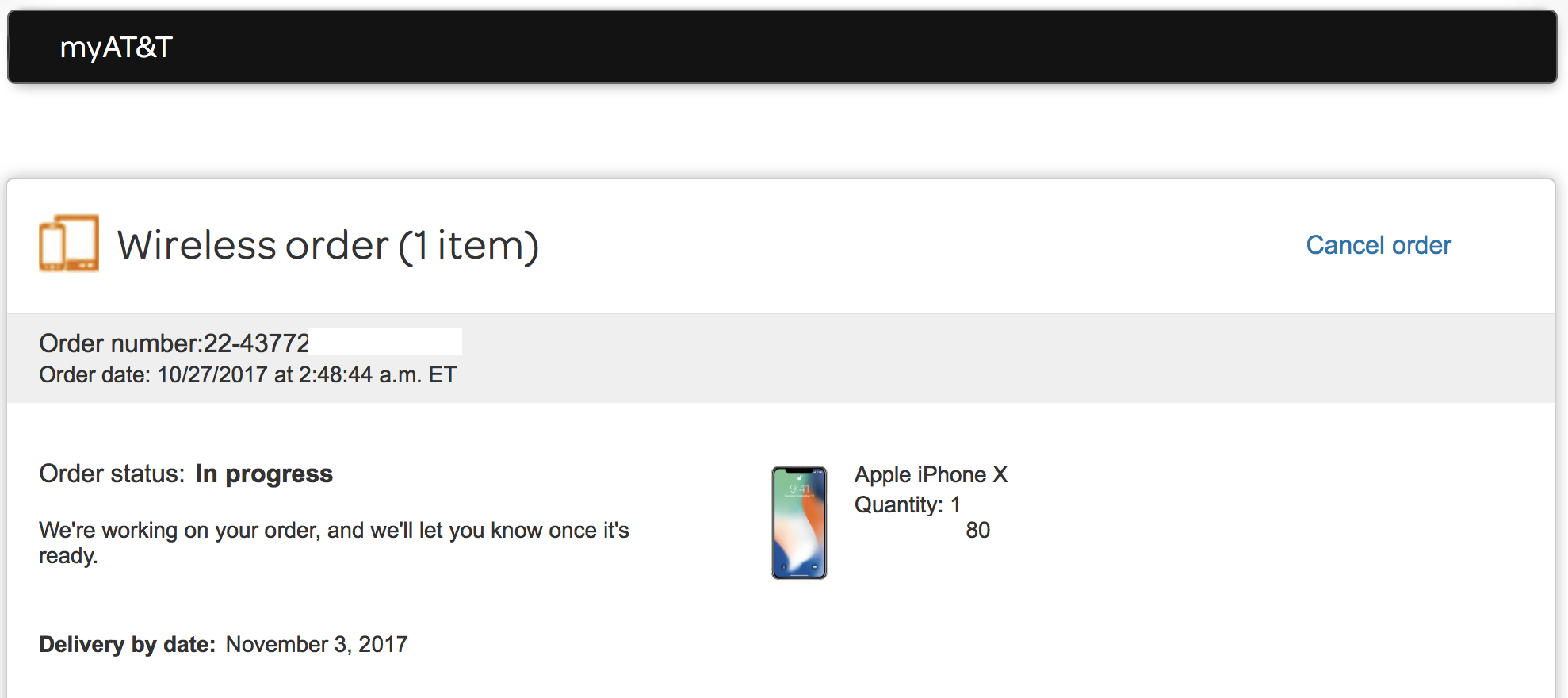 orders complete via the AT&T app at 11:56PM PT. Haven't received confirmation emails yet but have screenshots from iPhone