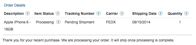 Just for good measure I figured I would put my experience in to help the masses. Pre-ordered the iPhone 6 64GB space gray from AT&T on 9/12 around 10am EST. Original confirmation stated I would get it between 10/13 and 10/31. Last night I was bumped to 9/23 to 10/2. The hold on my CC has dropped and the "cancel preorder" button on my Premier account has gone away. Looks like things are getting processed in due time. Good luck to everyone!