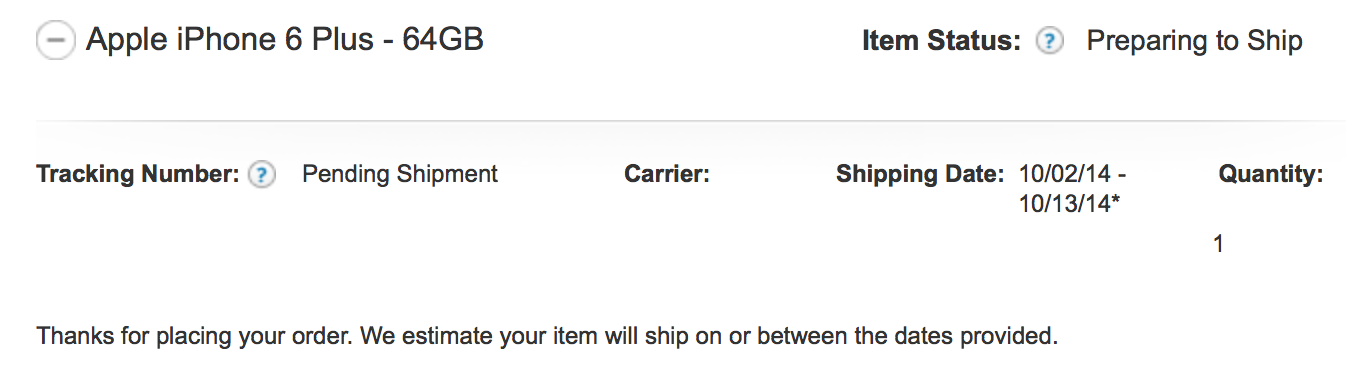 iPhone 6 16gb SG ordered at 3:45am EST, confirmation email at 5:12am