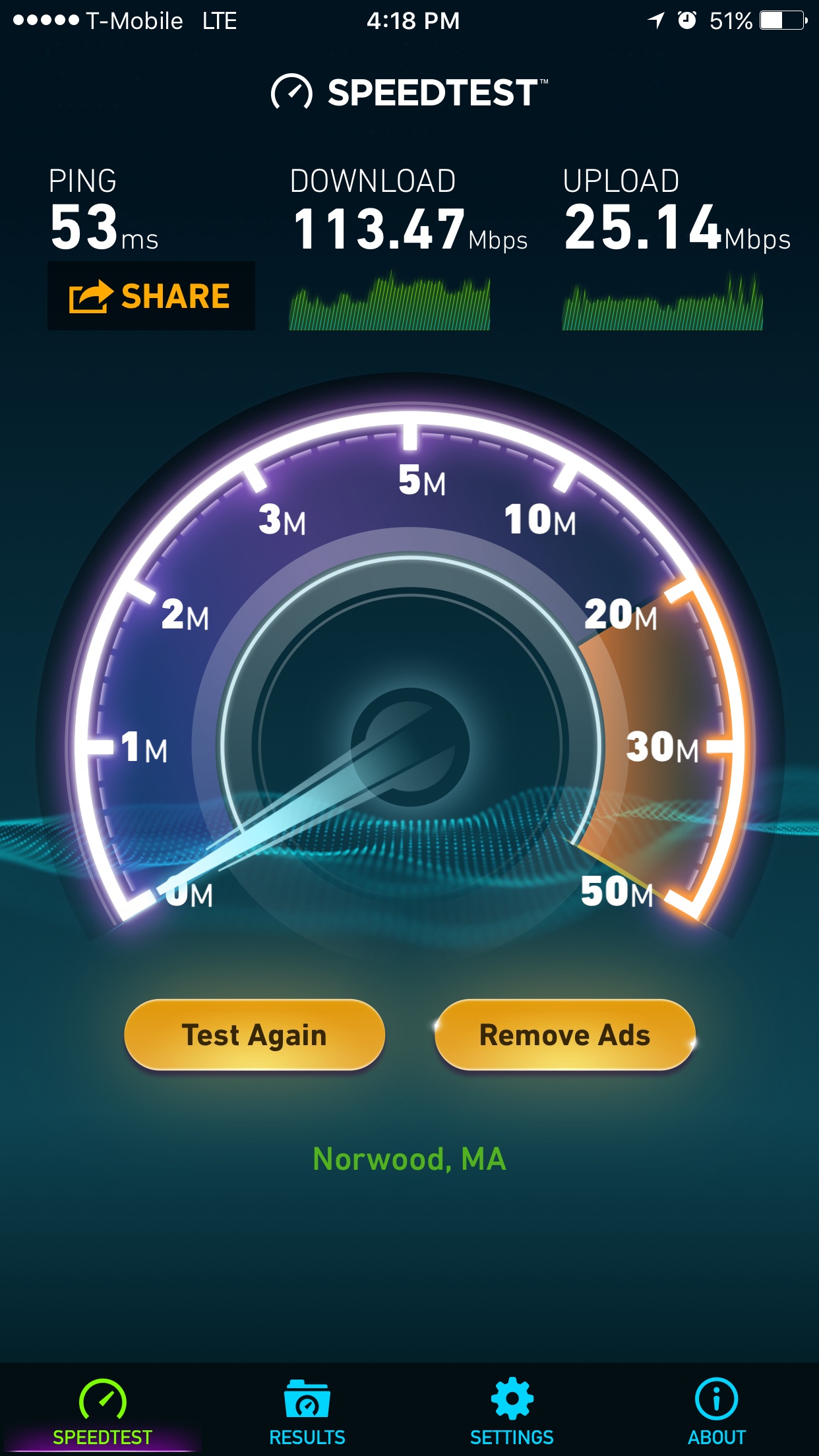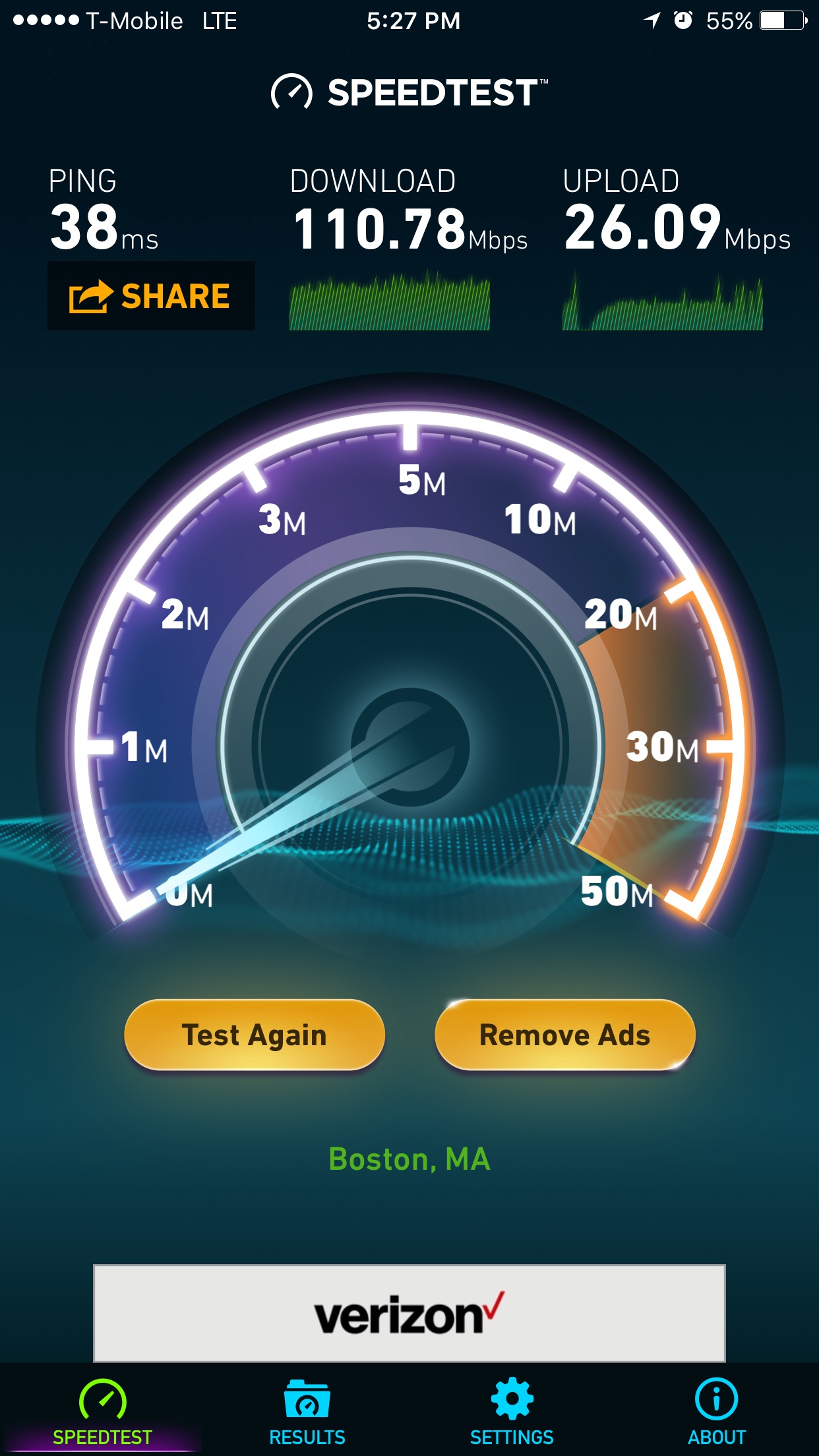 I know it's not important to a lot of people, but that upload speed is faster than many people's landlines.