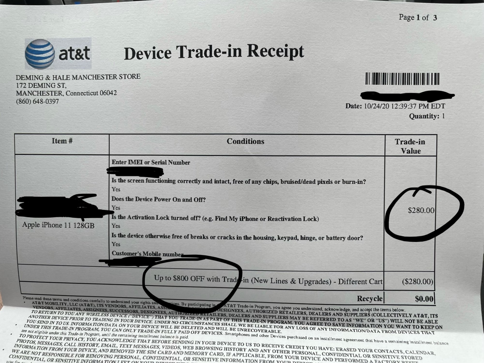 Ok, I’m hoping my print out is pretty standard, but it has the actual trade-in value of my phone but then says $800 in a separate line on the receipt. The guy at the AT&T store assured me I’d get the $800 but I’m a little nervous because...AT&T.