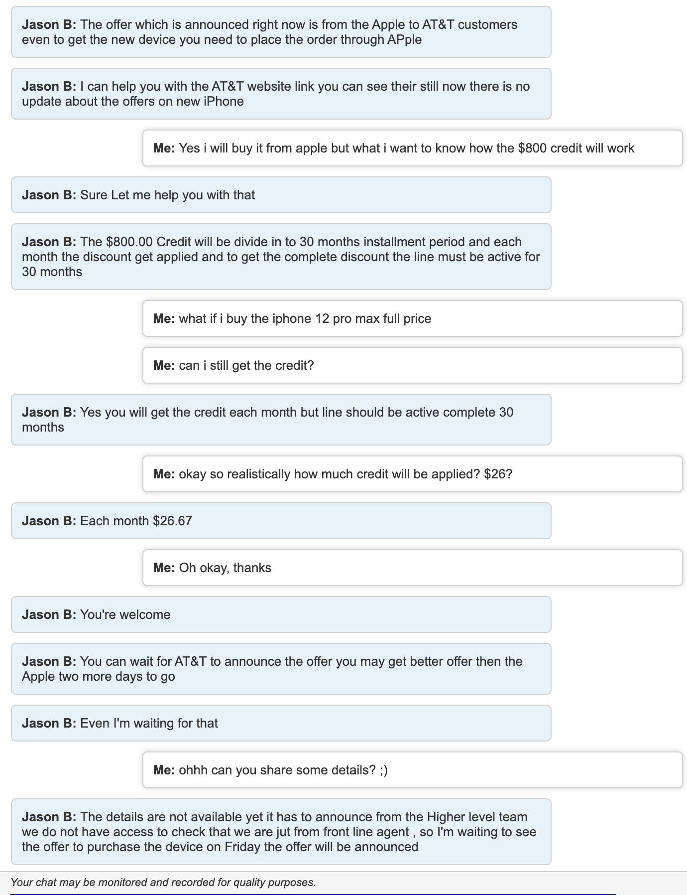 okay I got clarity for everyone's sake about the $800 credit. pretty much it'll be a $26.67 credit per month for 30 months. and you CAN purchase the phone outright and still qualify.