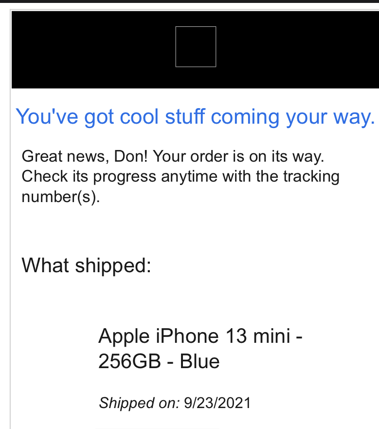 This is what mine says, “Great news! We're just about ready to ship your order.” Is this the same as your, “prep to ship”? Or does your quote mean one more step from my quote, I wonder.One of my two was prep to ship and other was in progress. Now both show prep to ship. Still says deliver by 24 est ship 23