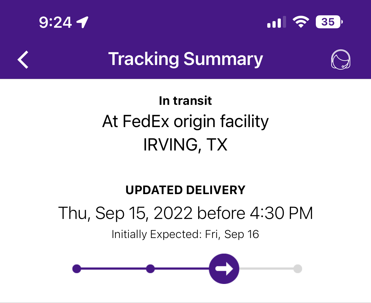 Wow. Nice! I don’t see anything on my FedEx app or on AT&T website. Just expected to ship Thursday 9/15