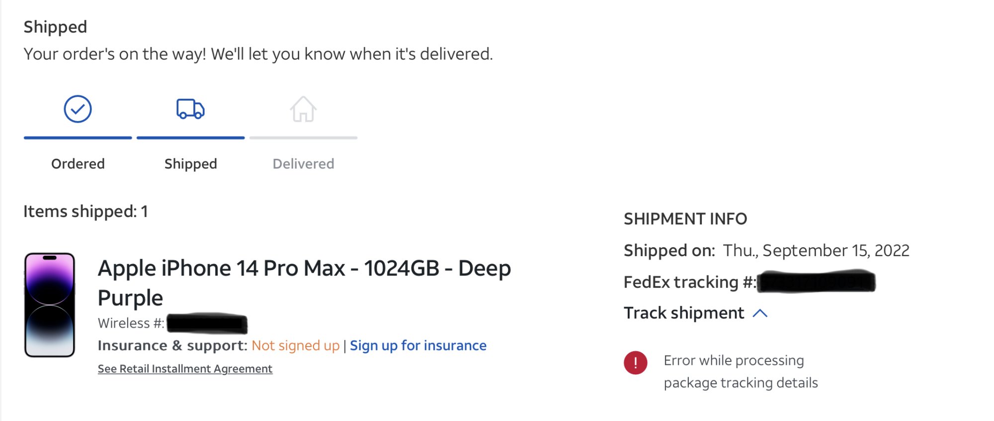 For that last part: thought so too but for me it says the label was printed which would mean there was inventory for it and the label is still active. Hasnt been suspended or anything. AT&T keeps saying itll arrive tomorrow but the UPS said they dont have it lol I got black for both me and the wife. Guess itll get here when it gets hereI ordered a 14 pro 512 in black pro max is just too big for me i like to have room in my pockets.