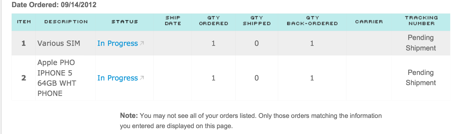 Still plenty of time for AT&T to fill your order tomorrow when they get your White iPhone 5 from Apple into Ft. Worth and ship it to you overnight for a Friday delivery.Yep it says back order 1 in process.