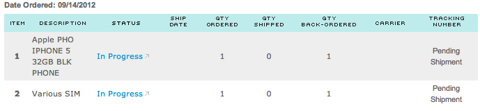 I received two confirmation emails last night ~20 minutes after my order. One of the emails states: Your iPhone 5 will be delivered on 9/21/12. Me likey.