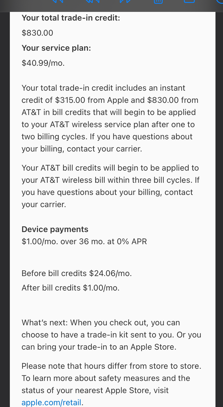 B bthompson macrumors 6502 Original poster Jun 29, 2009 280 100 Sep 11, 2025 #1 Hi there. Getting the air tomorrow and going through Apple. It’s all set up, but it says I’m getting 315 from Apple and 830 from ATT. I think this is a bug. I can still turn the phone into ATT correct? Attachments IMG_0044.jpeg 360 KB · Views: 89