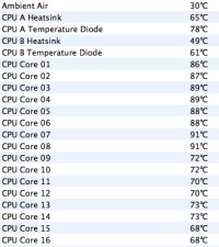 Meanwhile the machine running just full load stress test (ie. no audio or firewire) keeps its temperatures within sensible bounds.