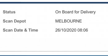 Nothing to worry about, ETA with StarTrack is 26th for me, was in the truck leaving Sydney yesterday when I checked the tracking, should update Monday morning, should be in Melbourne out for delivery early Monday morning. ššš±š