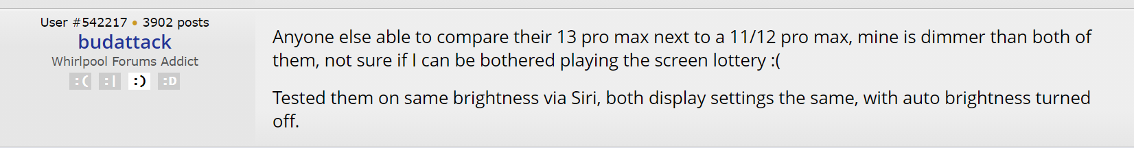 Meanwhile i put my 13 pro max next to 12 pro max on same brightness, 12 pro max definitely brighter. 🤦♂️