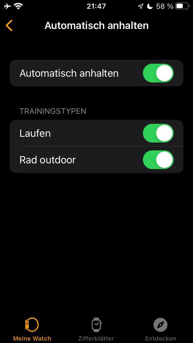 It still starts the workout automatically, but it doesn't pause and resume it anymore. That's been happening for a month or two now. And it is very annoying, because basically I now have to manually pause it every time I stop, and manually resume it as well – which is quite often, when you walk in a city …
