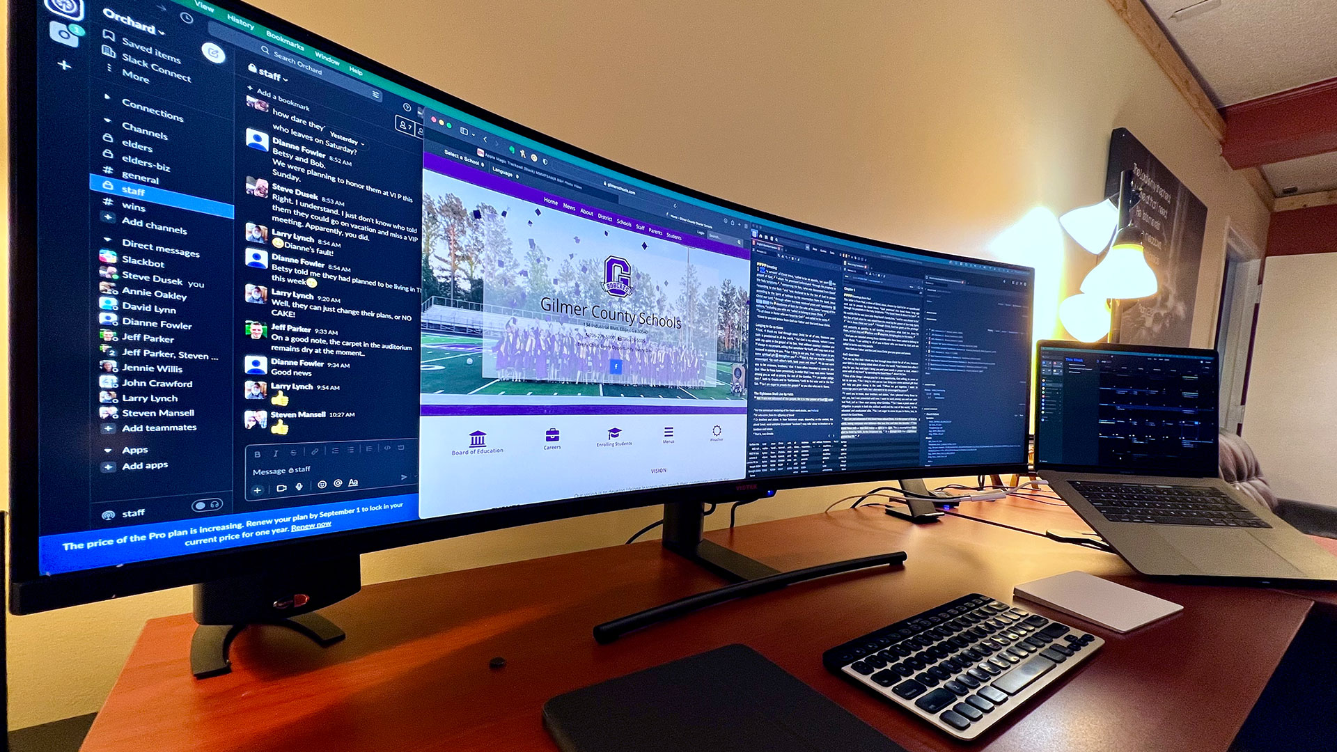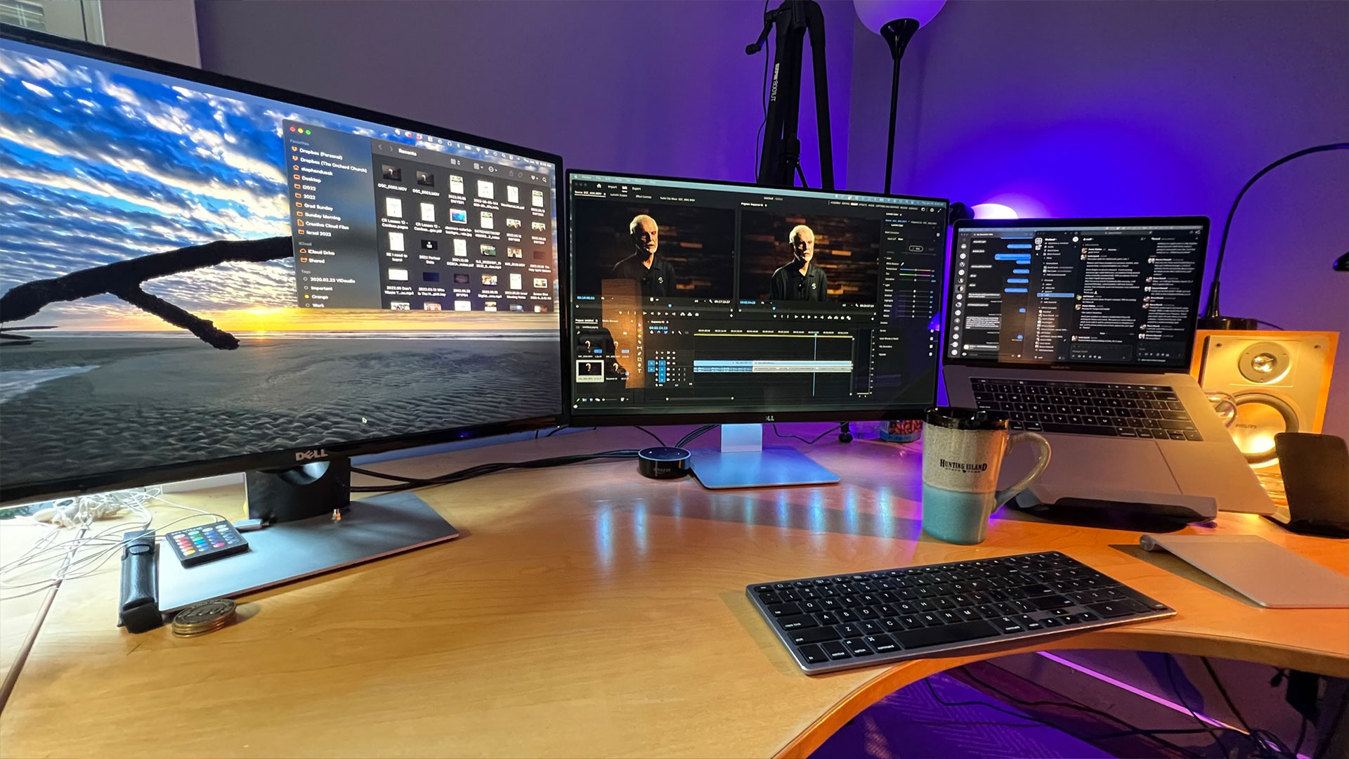 (In one workspace I use an ultra-ultra wide monitor with the computer in clamshell mode. In another I use the computer open with two attached external monitors)