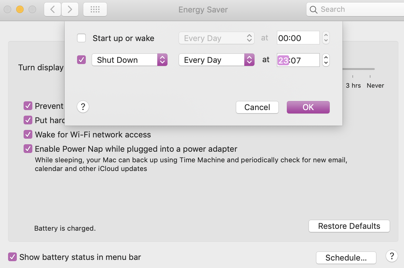 For years I have used the automatic login (> Users & Groups) to bypass the password screen without issue.Recently, I've started to use the scheduled shut down (> Energy saver > schedule) each night.