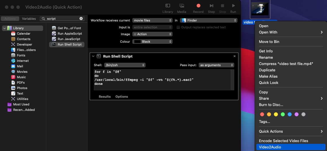 Sorry about the second part, I should have said QuickAction https://support.apple.com/guide/automator/aut73234890a/mac