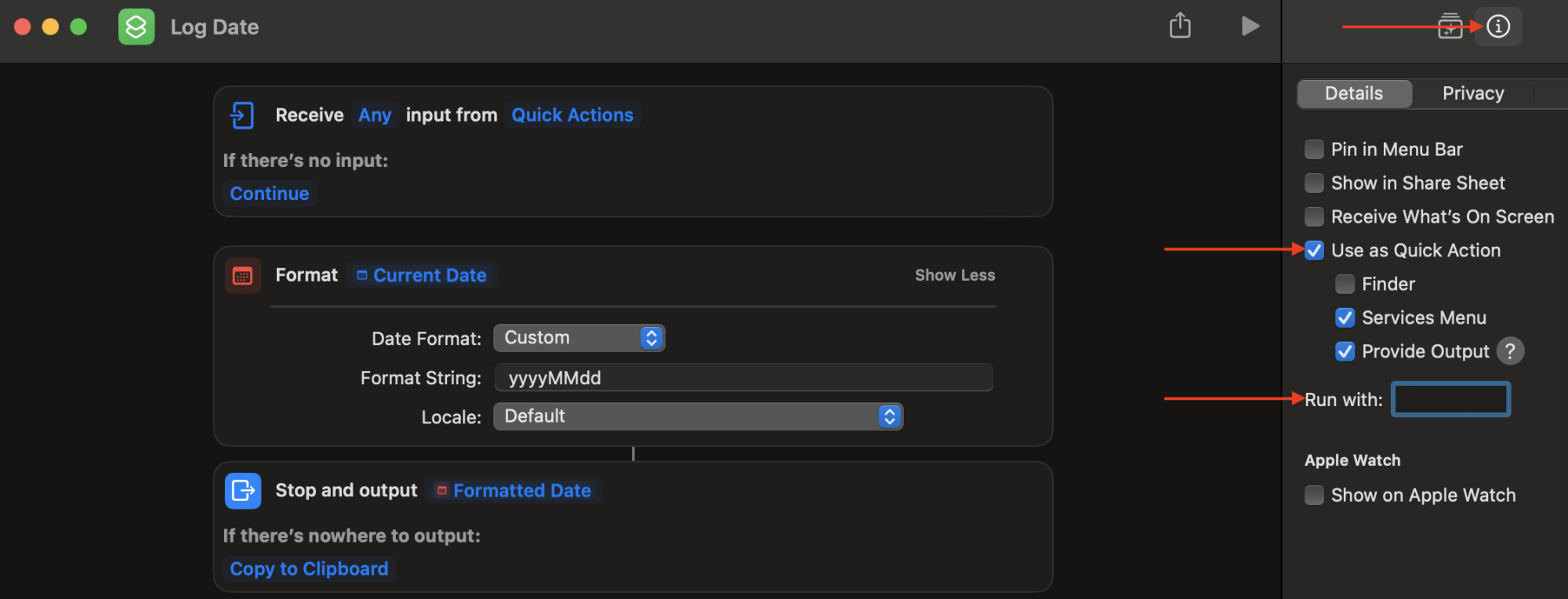 I wrote - with help - an AppleScript that does this (i.e., returns "- YYYYMMDD; ")