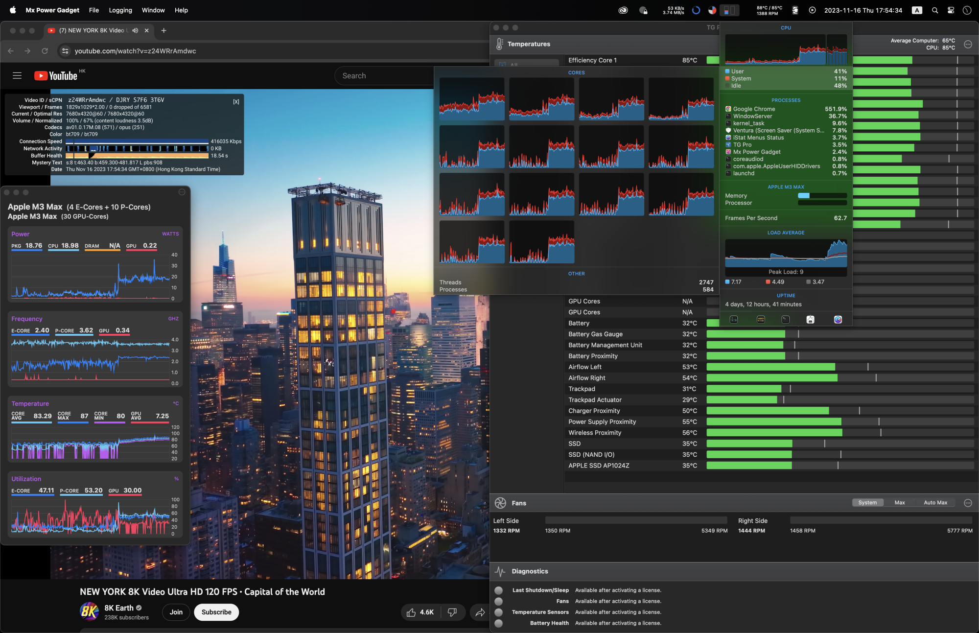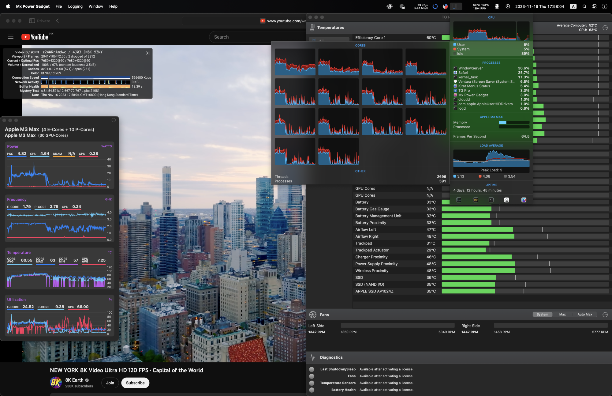 For Youtube 8K videos encoded with AV1, on my MBP 16 with M1 Pro, the playback is very smooth, but CPU usage is very high. Whole system power usage reached about 35w to 40w. This is an example: