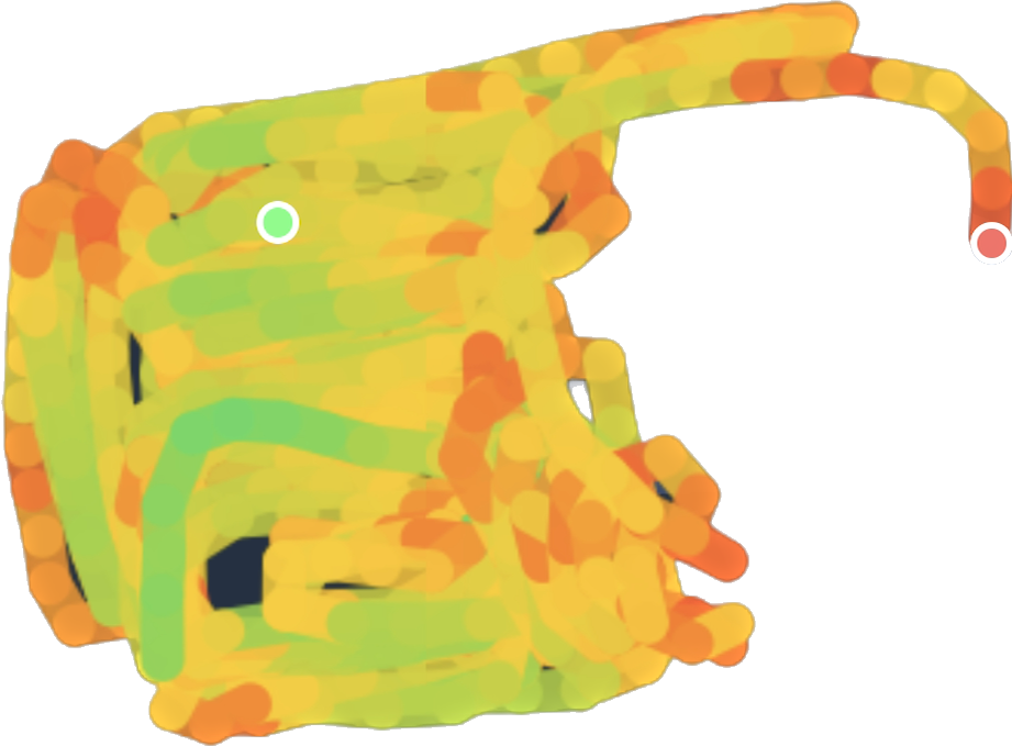 The heat map even shows where I spent more time, which was were I was turning the mower. The blank spot is my maple tree.