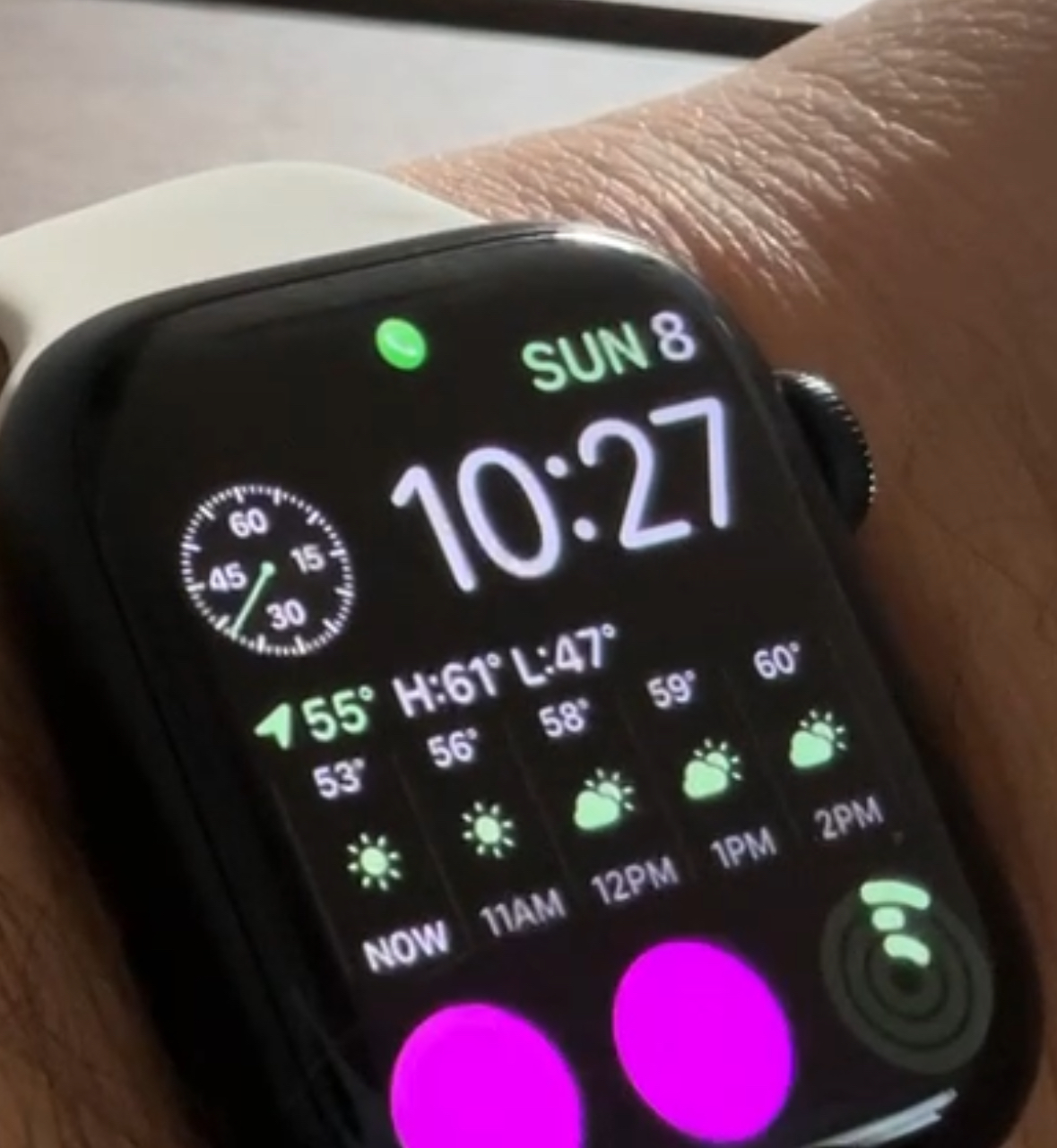 Running watchOS 10.0.1 on an AWU2, occasionally when the display wakes on wrist raise or when it auto-switches from dark to light mode some parts of the display / complications will flicker: it's like they briefly flash white/purple, just for a fraction of a second, then they're normal. It's infrequent / intermittent and I've not been able to reproduce it reliably or find any pattern that causes it. Anyone else seen this? I'm assuming software bug but thought I'd see if anyone else had seen it before I file feedback with Apple.