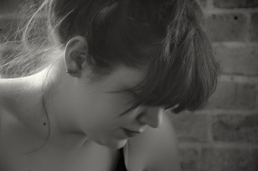 Here's my latest attempt, done with the trial version of Silver Efex Pro 2. I really love how much better/easier it is than the original version! I feel like it gives the photo a much more pronounced edge to it, feels much more 3D. At the very least, my lovely muse likes the way it turned out, so it can't be too bad!