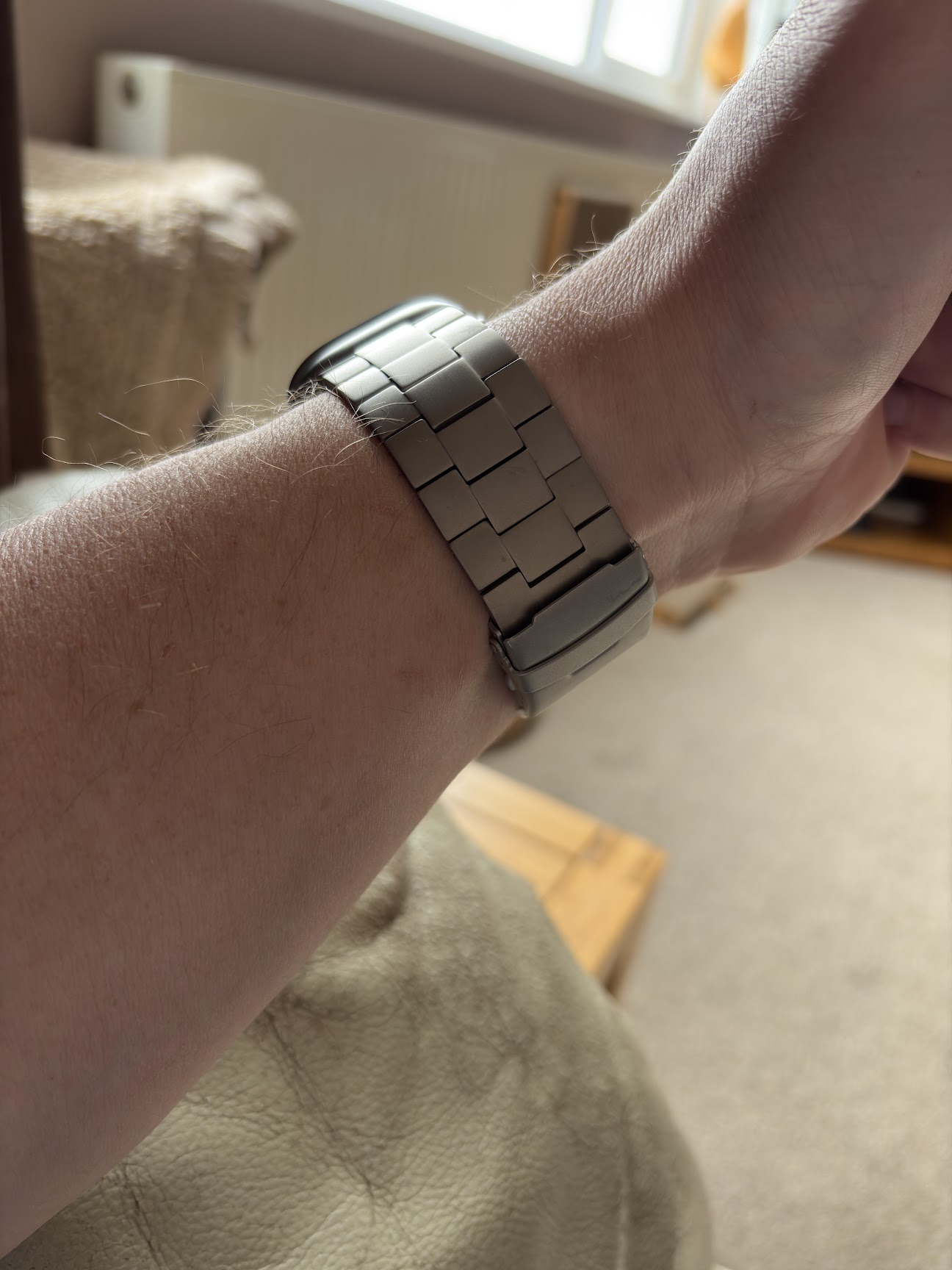 This 'titanium' one via Amazon: https://www.amazon.co.uk/synsing-Titanium-Compatible-Titanium-Wristband/dp/B0DDJ7SZKY