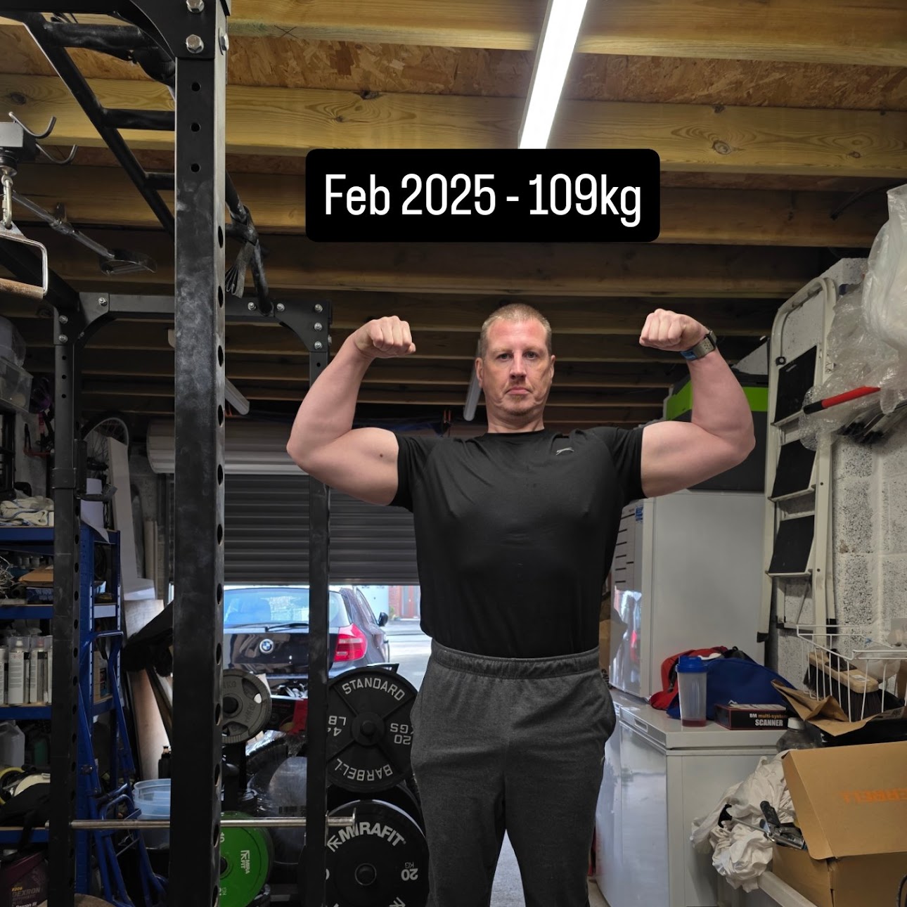 Unfortunately due to health issues over the last few years all heavy lifting now is done; I'm lucky to be able to squat 100kg at times (my PB was 303.5kg)!