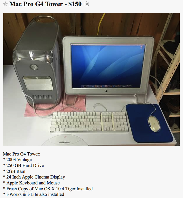 The second one there, MacPro G4? The seller is mixing a PowerMac and an Intel Mac!!!! Not to mention it's actually a G5! Sheesh!