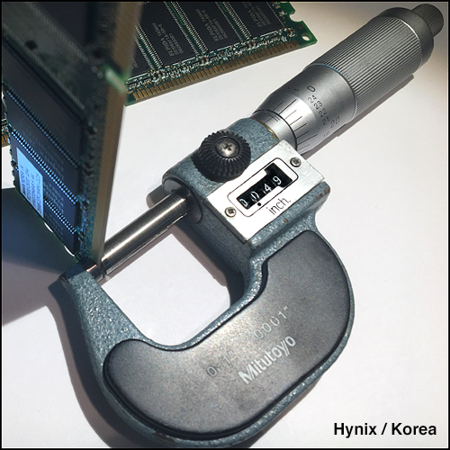 Close-up, contact “wear” comparison between two older sticks and the third (newer) is revealing? RAM does get swapped around quite a bit here and between different machines. *Some “wear” does occur. AND perhaps in the RAM slots too.