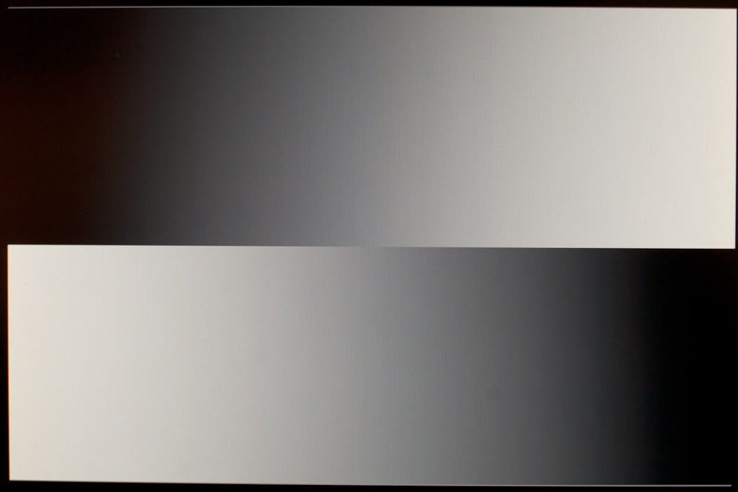 When viewing this test image ( http://www.lagom.nl/lcd-test/gradient.php ) with the integrated (Intel HD 3000) GPU running I see banding, whereas there is no banding at all if the discrete (AMD Radeon HD 6750M) GPU is rendering. This is the same in both Safari and Chrome.