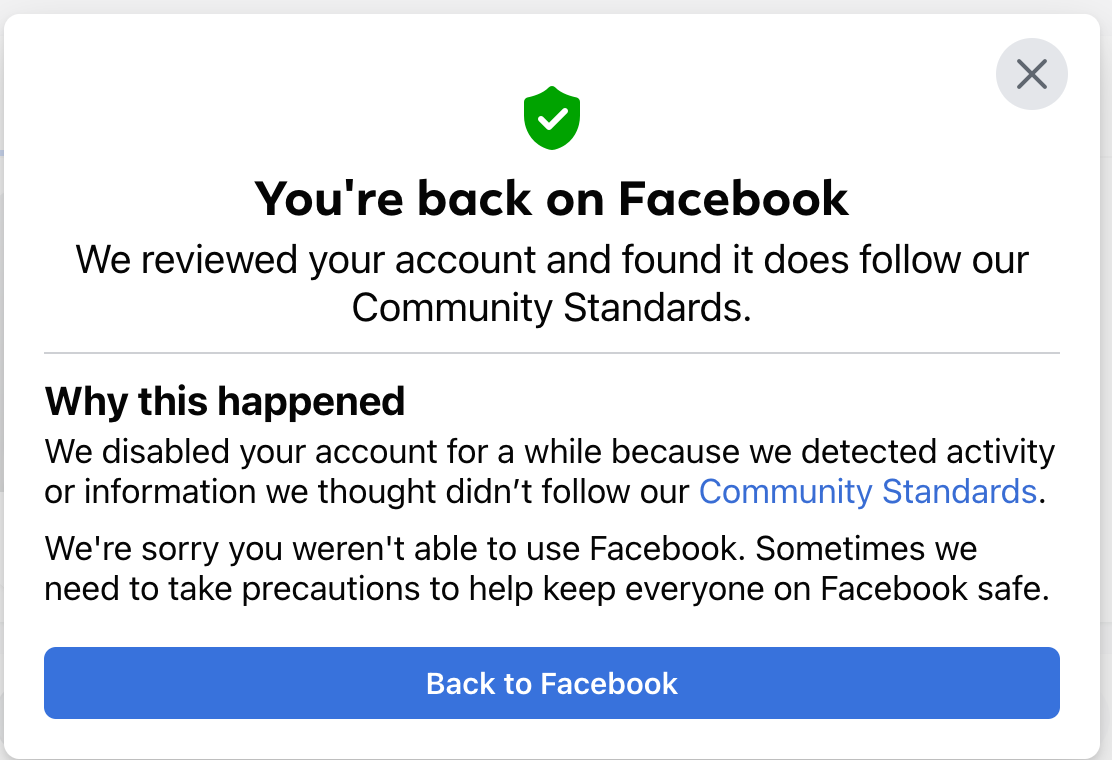 So, after being convinced by several people, I decided to join Facebook. I have no idea what I was even going to do with it, but I figured it'd be good to have. So I created an account and entered in all my information, but when I clicked "Create account," it was immediately suspended/banned. I never once saw the homepage or anything like that—I clicked create, and it popped up with a message saying my account had been suspended, and I could appeal the decision. So I appealed the decision and am still waiting on a response. The message in the attached screenshot is what now shows when I try to sign in.