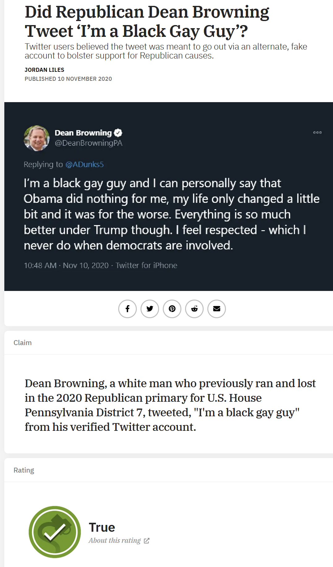 Did Republican Dean Browning Tweet 'I'm a Black Gay Guy'?