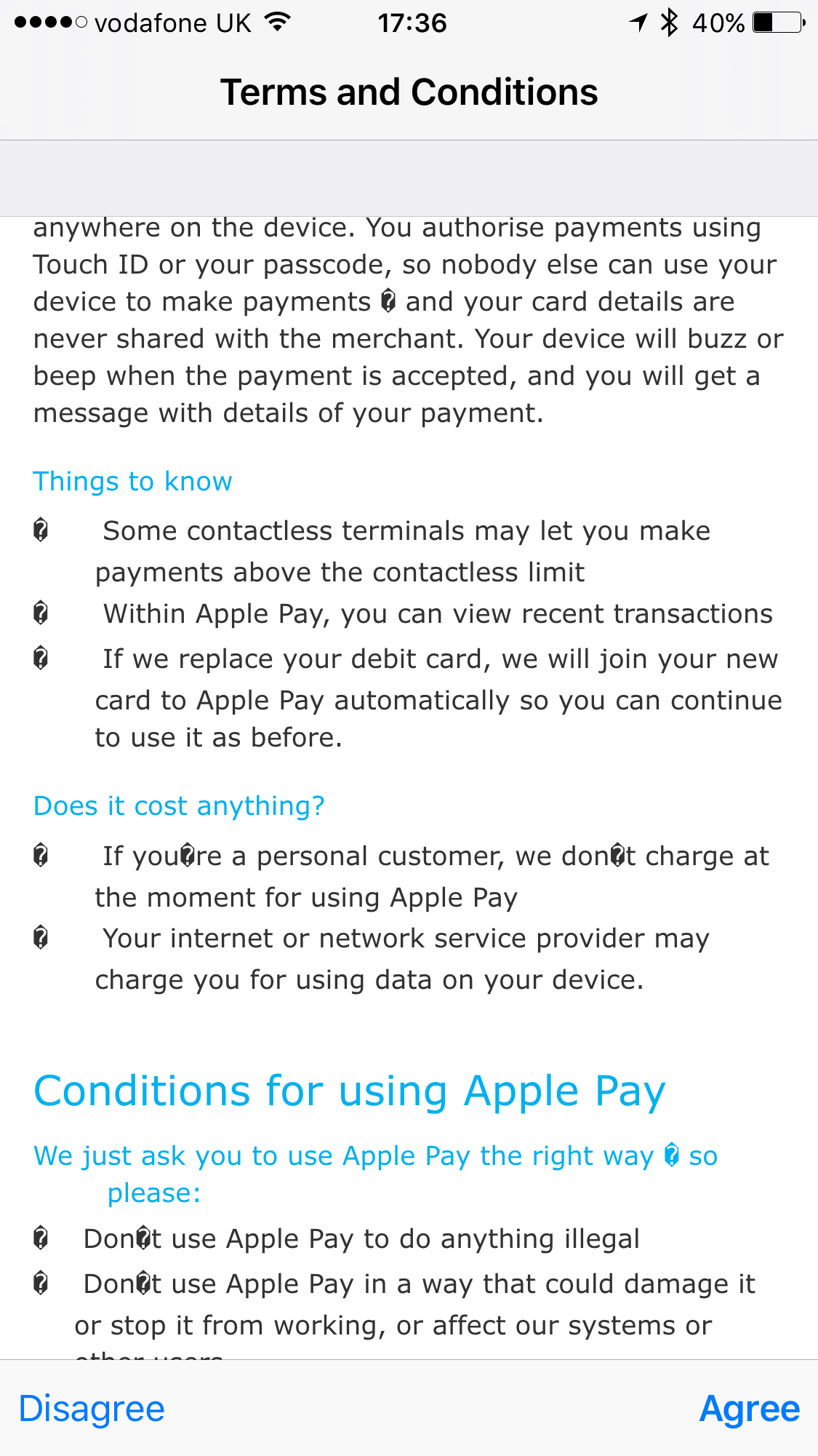 British bank Barclays appears to be in the process of enabling much-anticipated Apple Pay support in the United Kingdom, as multiple Twitter users have shared screenshots of a new terms and conditions page that now appears when attempting to add a Barclays-issued card to the iPhone-based mobile payments service.