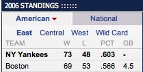I'm not calling the season yet, there are still 40 some games to play. However, I am affraid that the Sox front office is ignoring history a little bit (Dan Duqette, Lou Gorman, Grady Little). The fans of Boston can be very critical, especially when obvious mistakes are made. Remember, this is the team that fired Grady Little for leaving a pitcher in one game one inning too long.