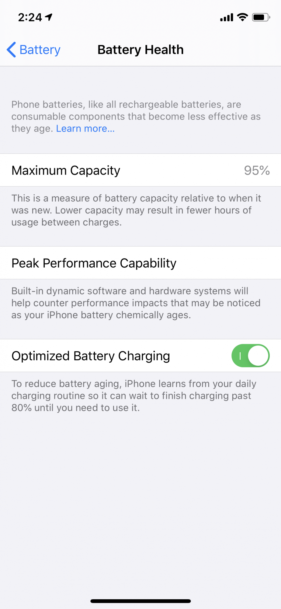 For all the battery health enthusiasts, try comparing your Apple Battery Health numbers with those of CoconutBattery app for macOS. You may be surprised. FWIW, my two year old iPhone 7 was showing 88% battery health, while also displaying the message that battery needed replacing. The battery life was bad, however, and CoconutBattery gave me a reading that the battery was actually at 55% of its original capacity. So even charging it to a 100% would only give me several hours of use. I swapped the battery in the end, but it was an interesting learning experience.